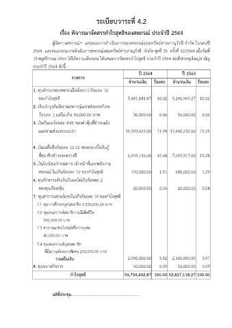 15 พฤศจิกายน 2564 ไดใหความเห็นชอบ ใหเสนอการจัดสรรกําไรสุทธิ ประจําป 2564 ตอที่ประชุมใหญสามัญ