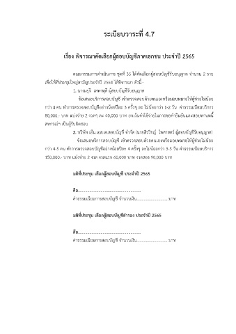 เรื่อง พิจารณาคัดเลือกผูสอบบัญชีภาคเอกชน ประจําป 2565