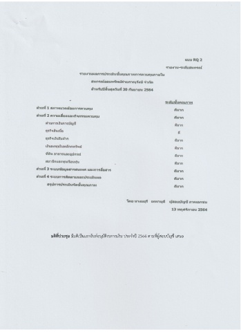 มติที่ประชุม มีมติเปนเอกฉันทอนุมัติงบการเงิน ประจําป 2564 ตามที่ผูสอบบัญชี เสนอ