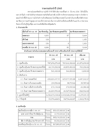 สําหรับผลการดําเนินงานของสหกรณ์ในรอบปี 2565 เปรียบเทียบกับปี 2564 สรุปได้ดังนี้